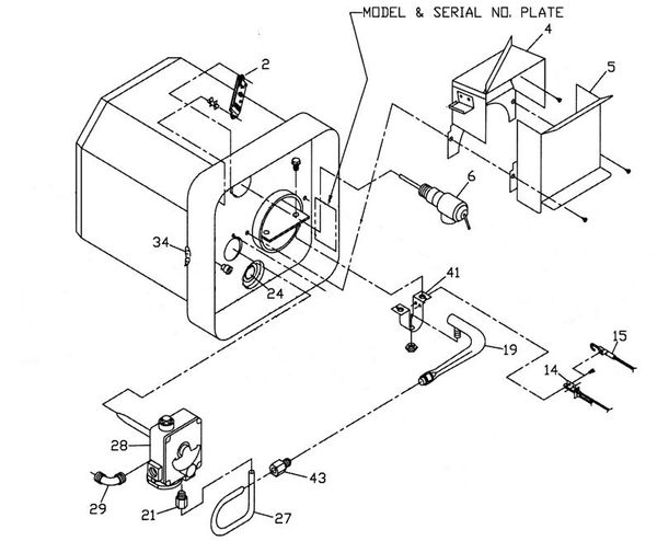 You will find both the serial number and part number on white tags at the locations indicated below.